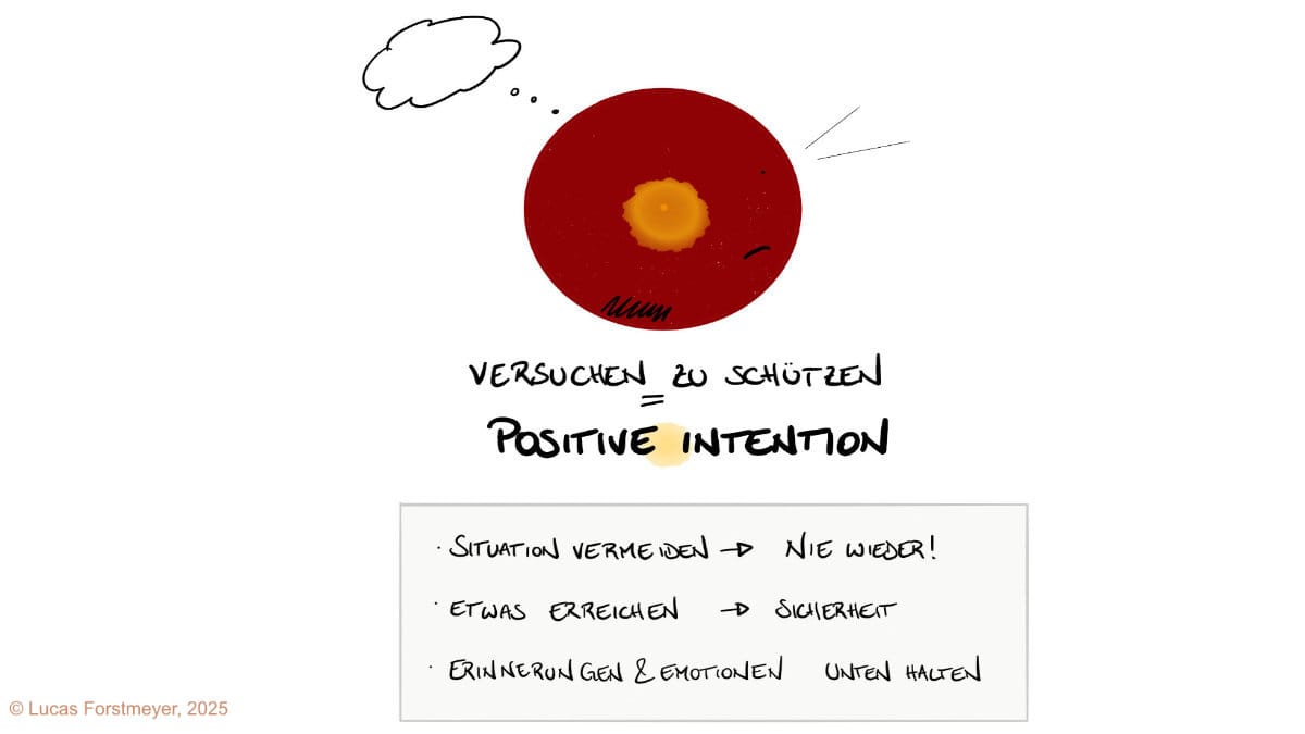 Ein zentrales Konzept im IFS: Jeder Beschützer hat eine positive Intention. Er möchte etwas herbeiführen, was für den Organismus hilfreich ist. Das heißt, entweder möchte er bestimmte Dinge vermeiden, oder er möchte bestimmte Situationen erreichen.