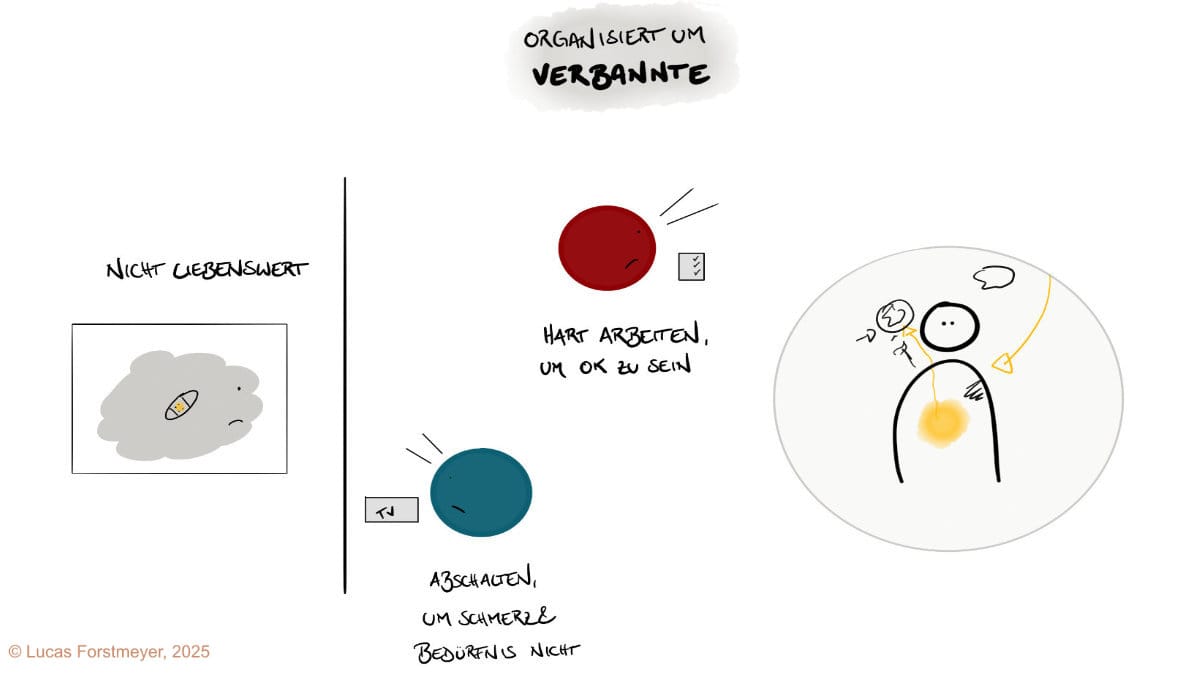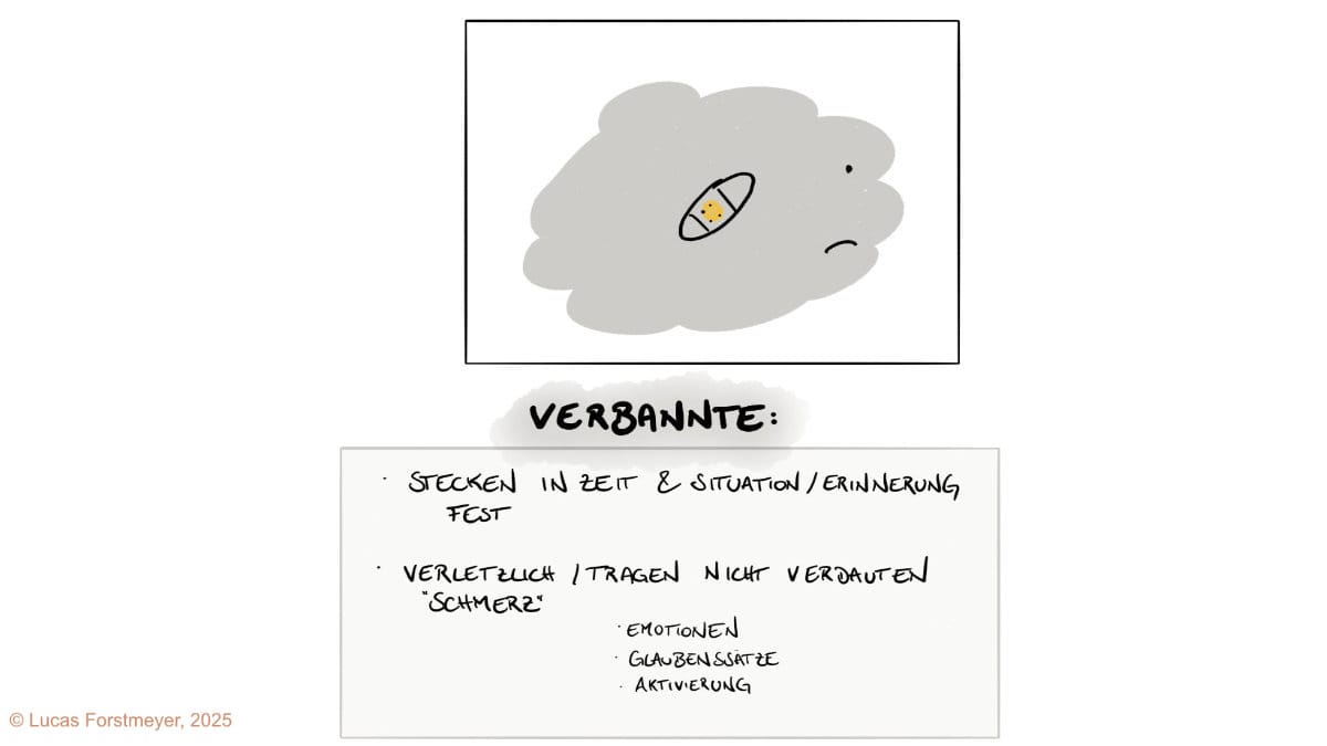 Ganze Aktivierungszustände, bei denen unser Nervensystem bei kleinen Triggern immer wieder in die gleichen Reaktionen kommt. Diese sind in den Verbannten noch immer wie damals vorhanden und wurden nicht verdaut.