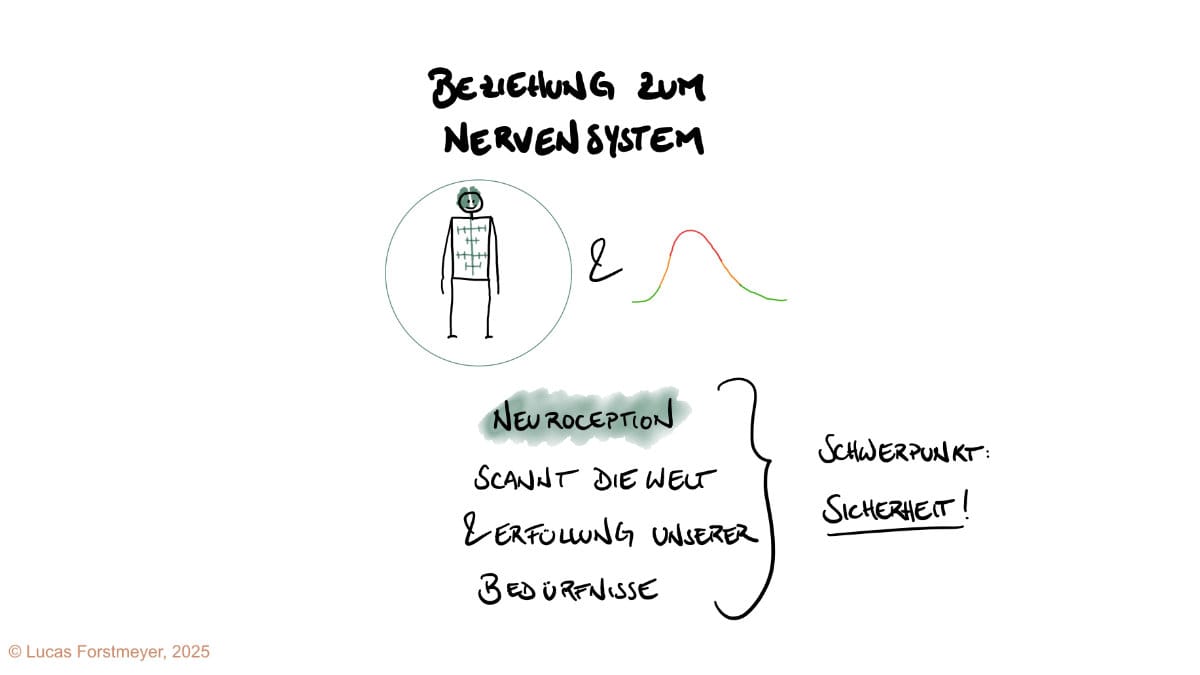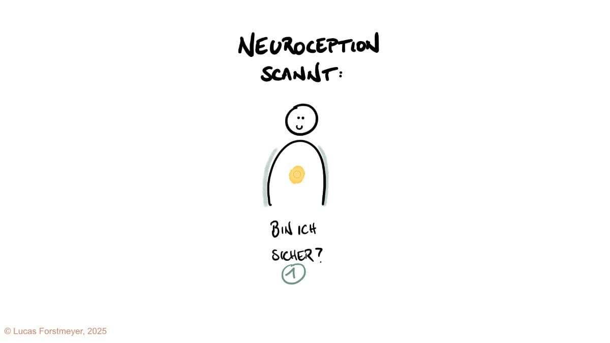 Unser autonomes Nervensystem ist permanent damit beschäftigt, unsere Umgebung zu scannen, um eine entscheidende Frage zu beantworten: Bin ich sicher?. Stephen Porges, der Begründer der Polyvagal-Theorie, nennt diesen unbewussten Prozess "Neuroception". Dein Nervensystem stellt dabei vor allem drei Fragen: