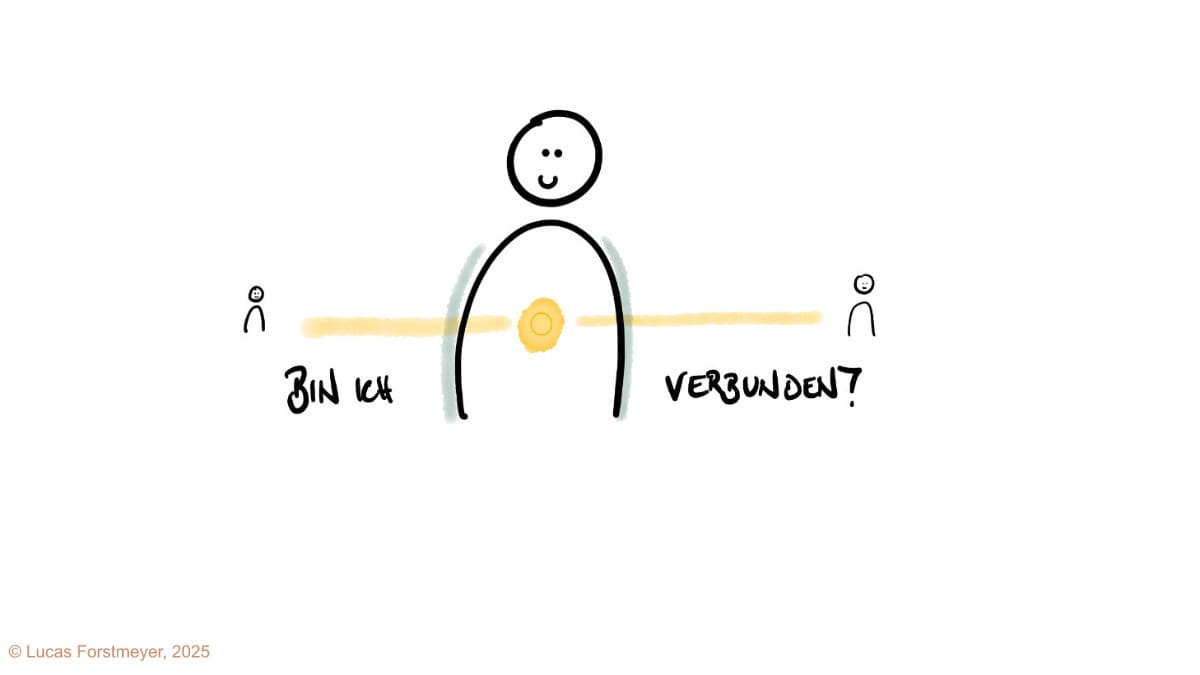 Die zweite Frage, die unser Nervensystem permanent stellt, ist: Bin ich verbunden?. Aus Sicht der Polyvagal-Theorie ist Verbindung nicht nur ein "Nice-to-have", sondern die schlauste und evolutionär neueste Überlebensstrategie, die wir haben. Wenn wir in einem regulierten Zustand sind (dem sogenannten "Social Engagement System"), ist die Verbindung mit anderen Menschen der Zustand, der für unseren Organismus am wenigsten anstrengend und am gewinnbringendsten ist. Wir sehnen uns nach Verbindung, denn sie signalisiert unserem Körper auf tiefster Ebene: "Du bist sicher.".