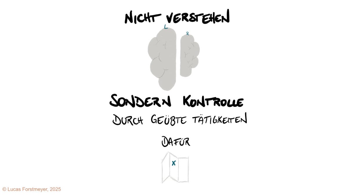 Das zeigt: Der Job der linken Hemisphäre ist nicht primär das Verstehen der Realität, sondern die Kontrolle basierend auf dem, was sie bereits weiß.